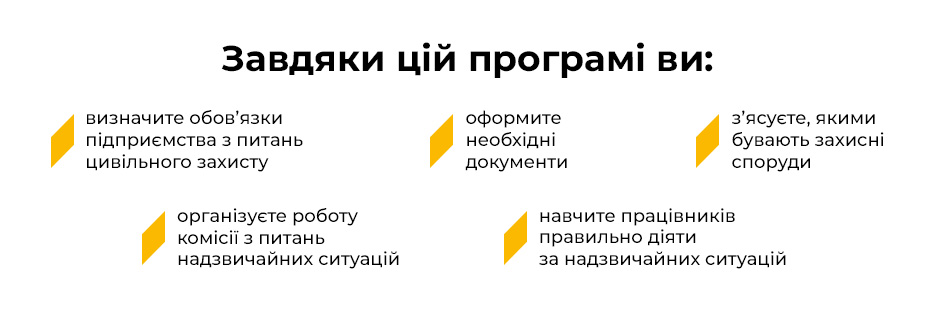 Створити на підприємстві дієву систему цивільного захисту — одне з найважливіших завдань керівника та його команди. Особливо актуально це в умовах воєнного стану. Отримати або оновити знання з цивільного захисту вам допоможе нова програма від Вищої школи охорони праці.