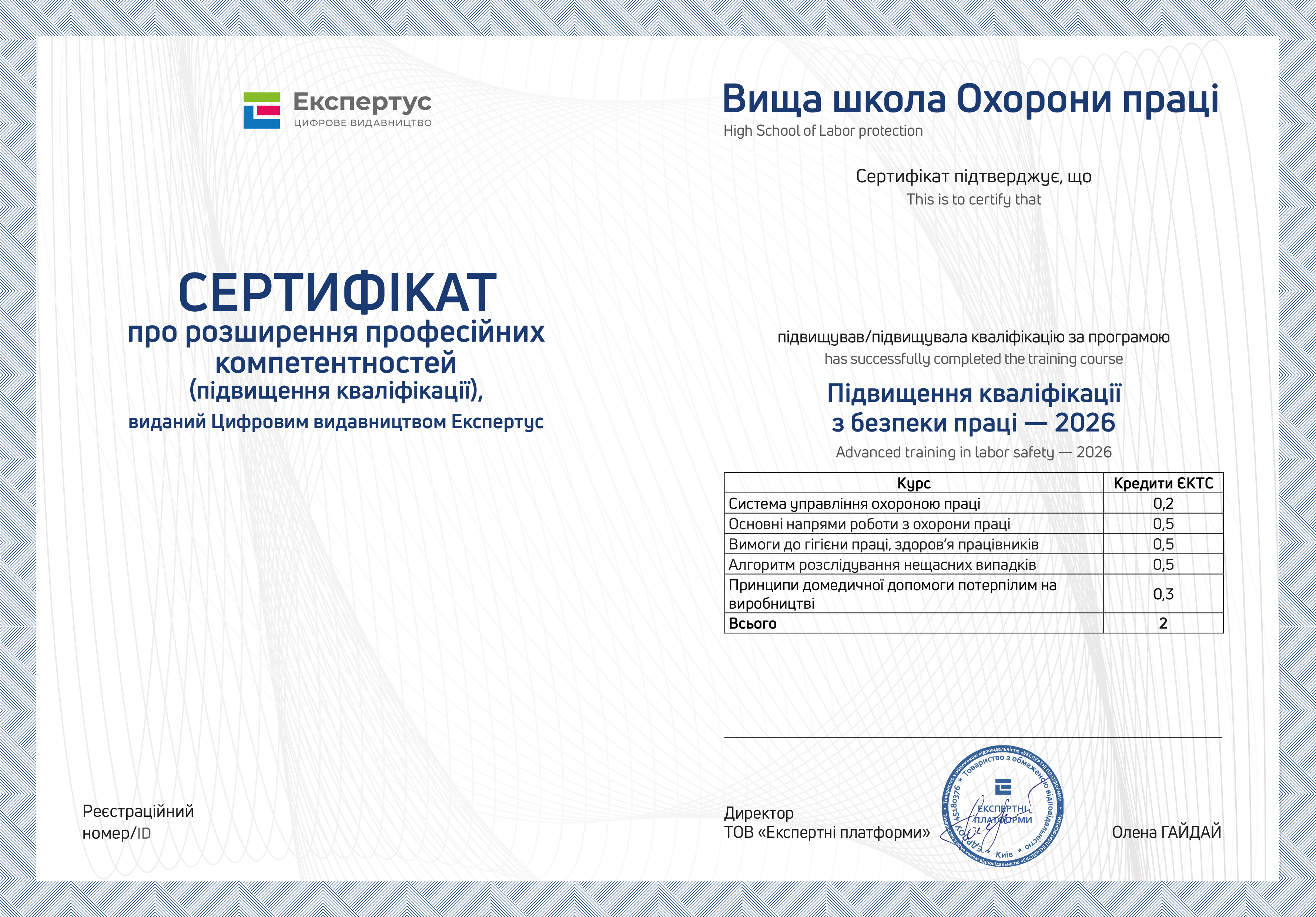 По закінченню навчання клієнт отримує електронний сертифікат про підвищення кваліфікації від нашого видавництва.
