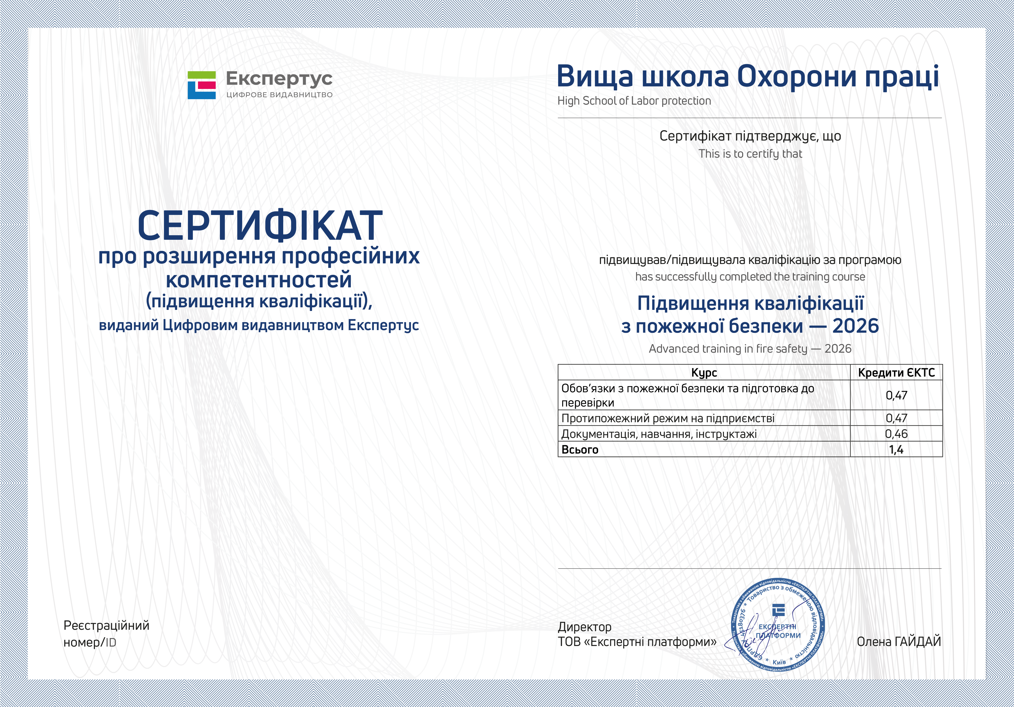 Колего, Вища школа Охорони праці вітає вас на старті програми «Підвищення кваліфікації з пожежної безпеки — 2026»!
